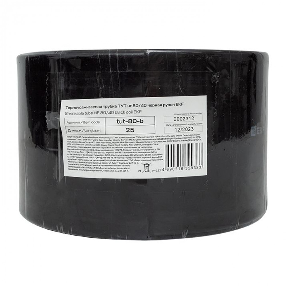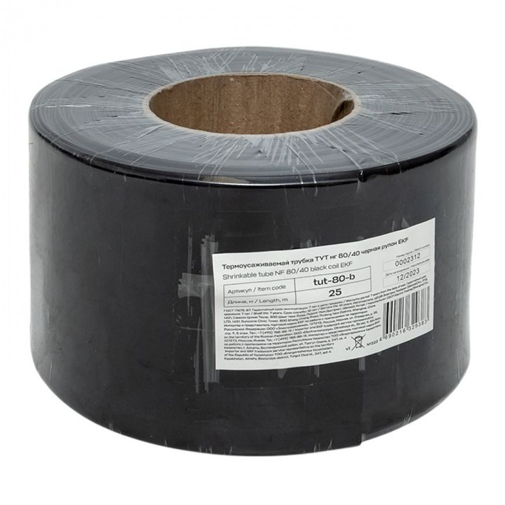 Описание Термоусаживаемая трубка ТУТ нг 80/40 черная рулон PROxima tut-80-b