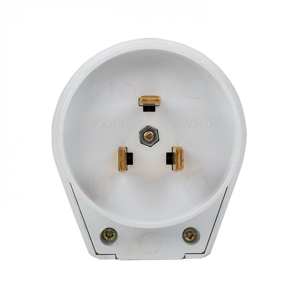 Описание Вилка для разъема РШ-ВШ 32А 250В 2P+PE пластиковая бел. AS-250-B-01