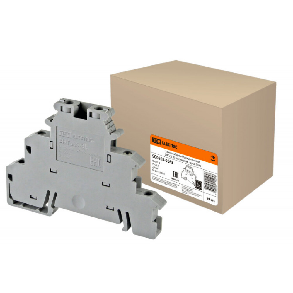 Зажим наборный трехуровневый ЗНТ 2,5-3L серый SQ0803-0065, Клемма на DIN-рейку