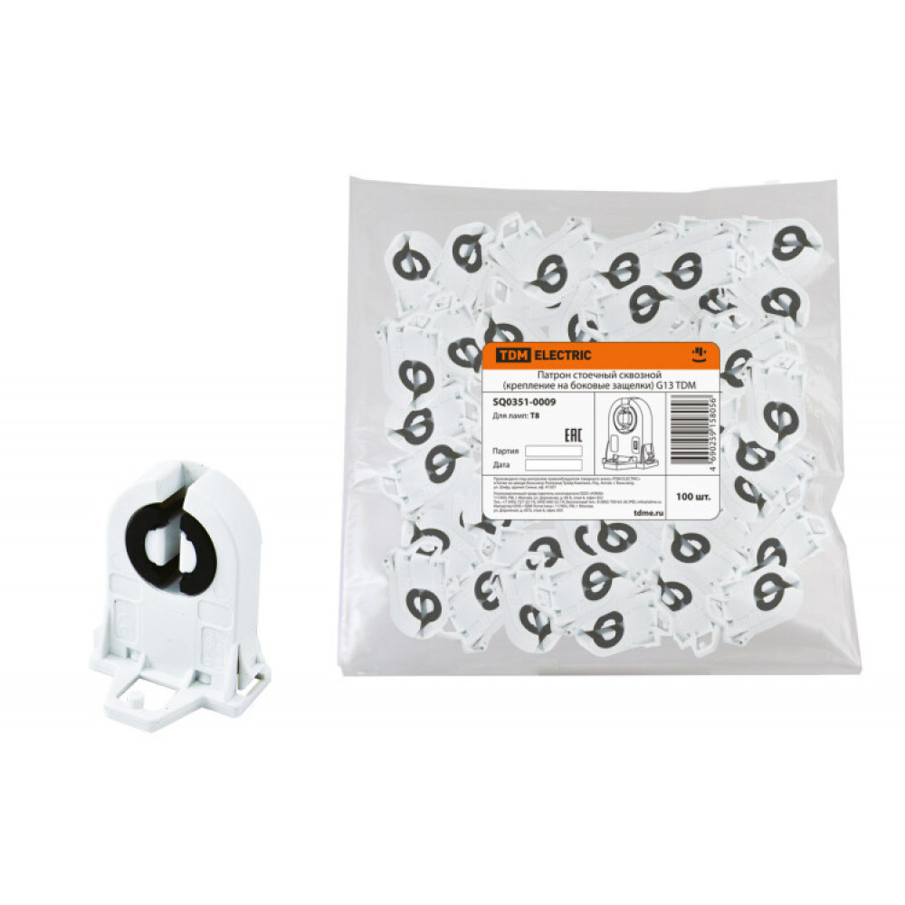 Патрон стоечный сквозной (крепление на боковые защелки) G13 SQ0351-0009, Патрон, ламподержатель, стартер, переходник