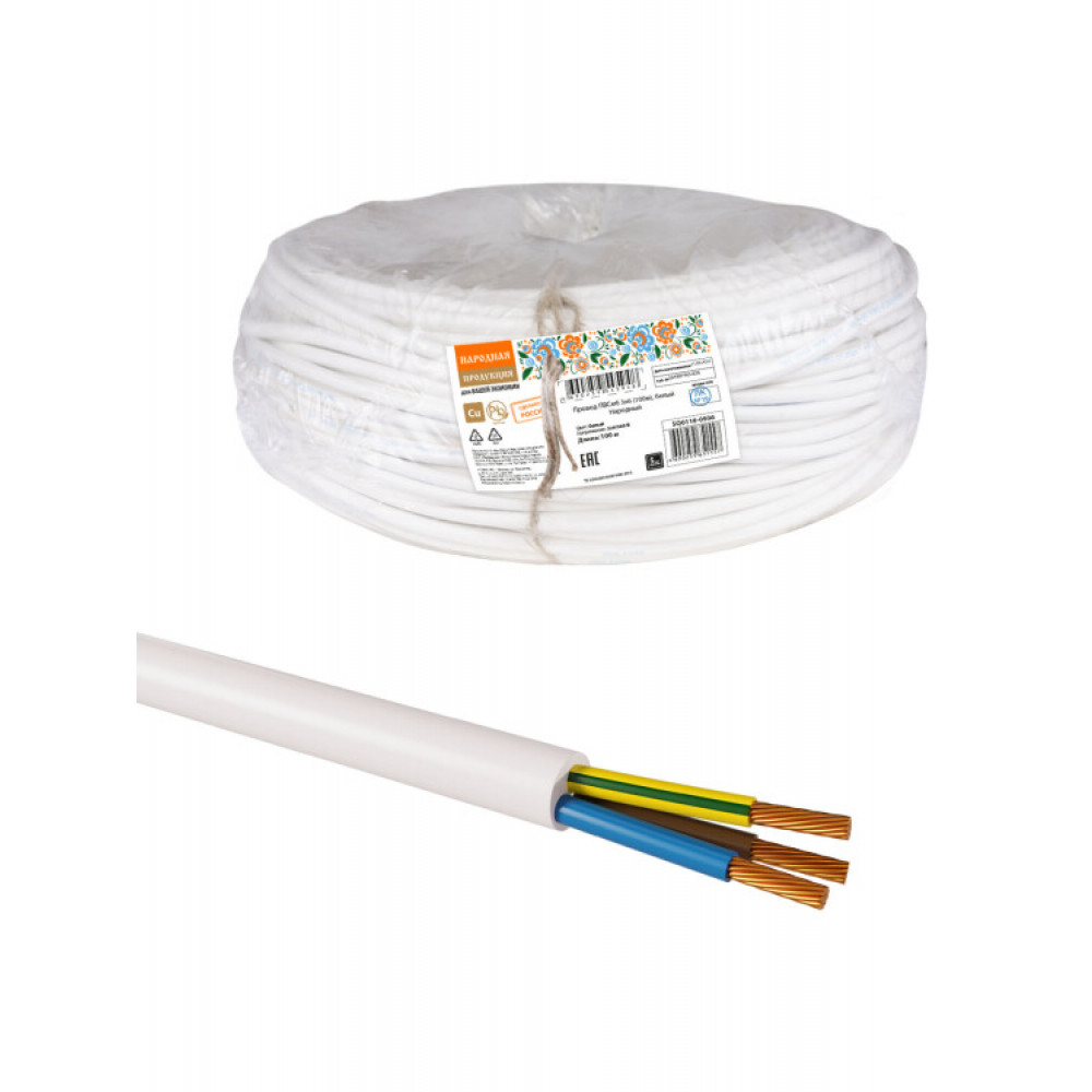 Провод ПВСмб 3х6 (100м), белый Народный SQ0118-0936, Кабель и провод силовой гибкий