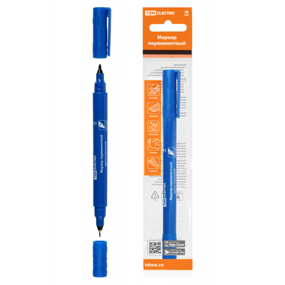 Описание Маркер перманентный двухсторонний 0,4/1 мм, синий (пакет) круглый наконечник SQ0594-0114