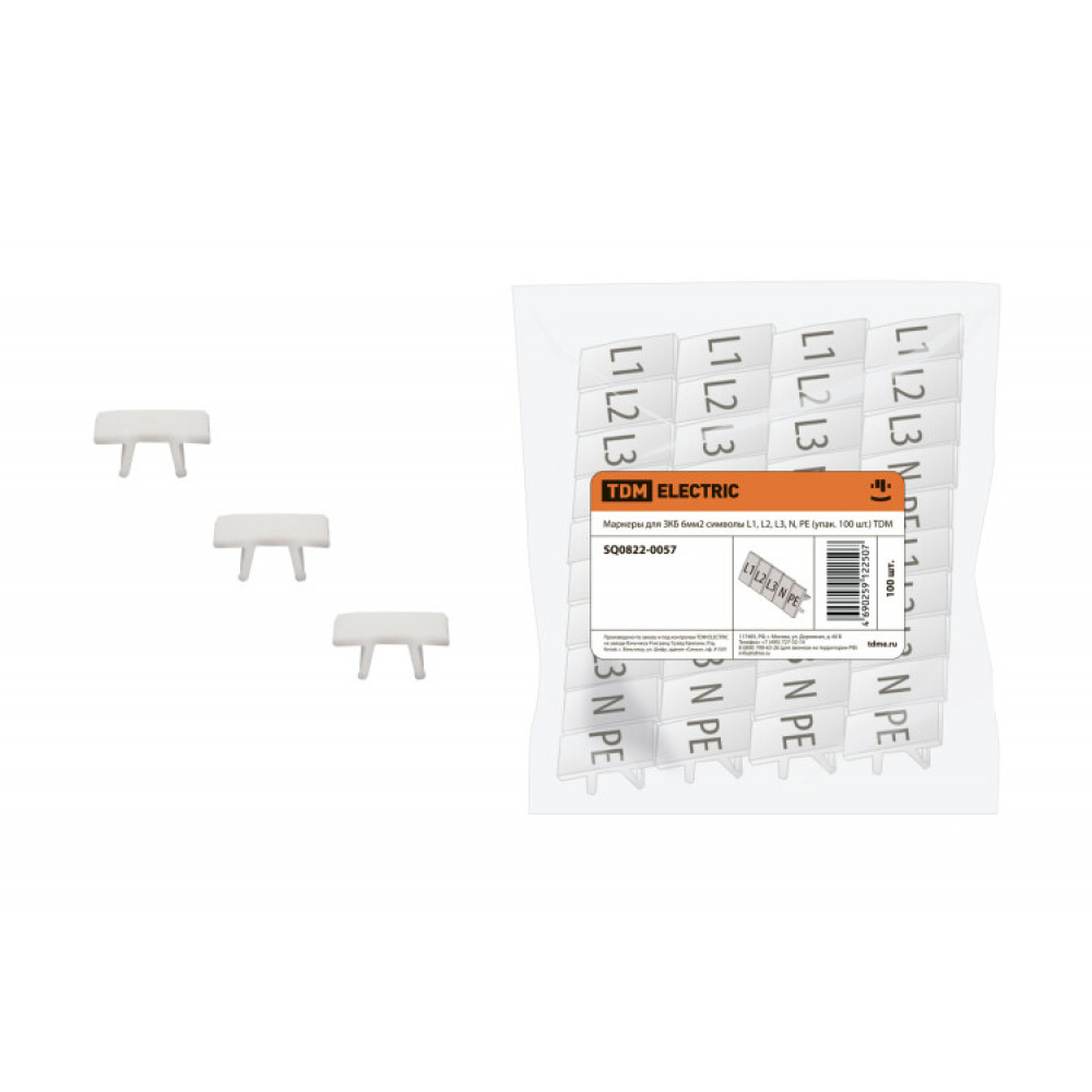 Маркеры для ЗКБ 6мм2 символы L1, L2, L3, N, PE (упак. 100 шт.) SQ0822-0057, Средство маркировки