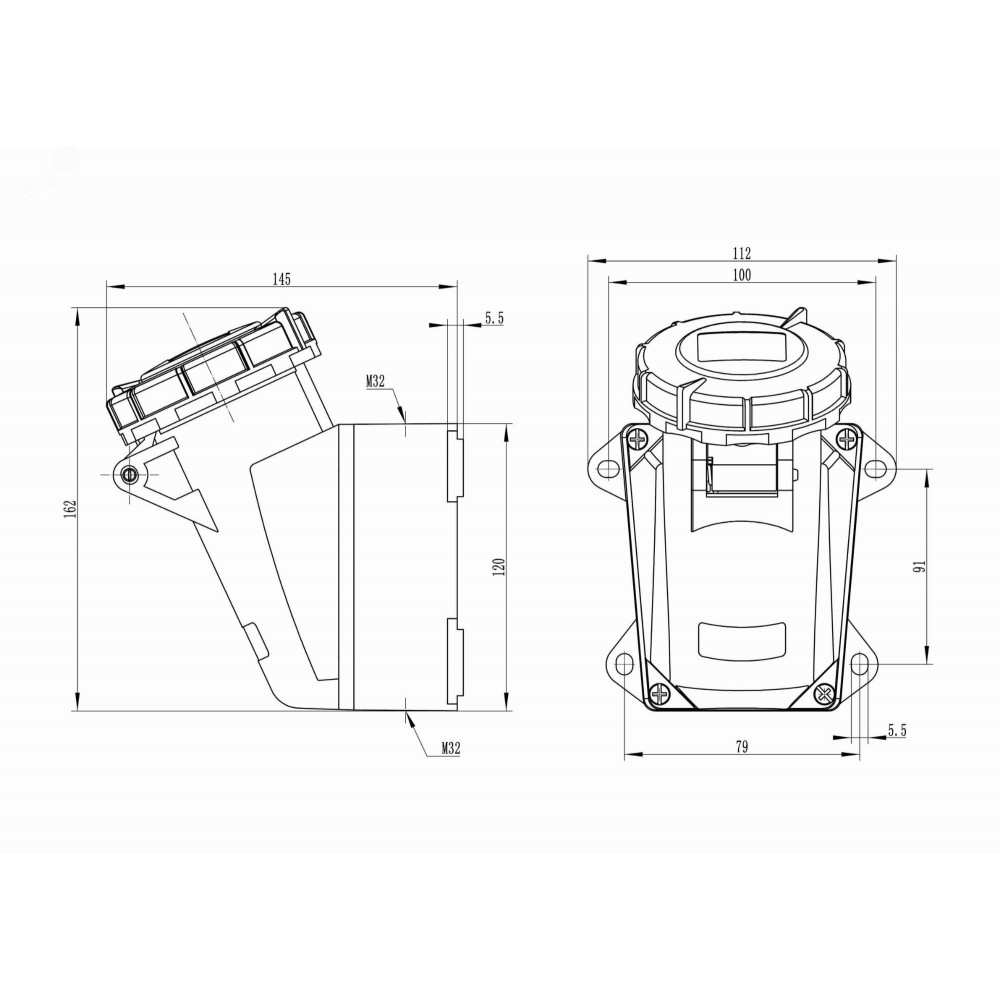 Розетка настенная IP67 32A 3P+E 400В DIS5183256T, Разъем силовой и модуль комбинируемый