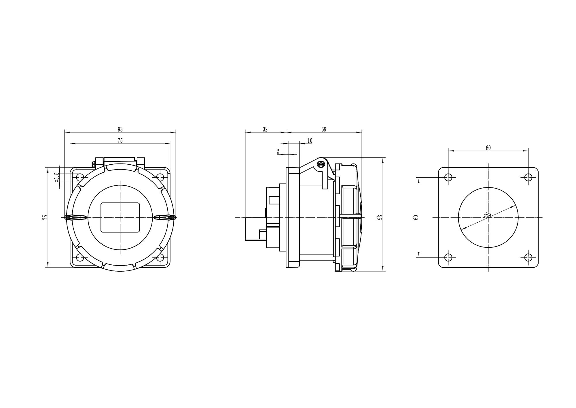Описание Розетка панельная IP67 16A 3P+E+N 400В DIS4271667