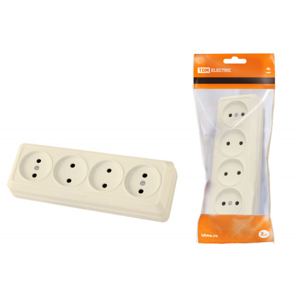 Розетка 4-х местная горизонтальная 2П открытой установки IP20 10A сл. кость "Ладога" SQ1801-0228, Розетка открытого монтажа