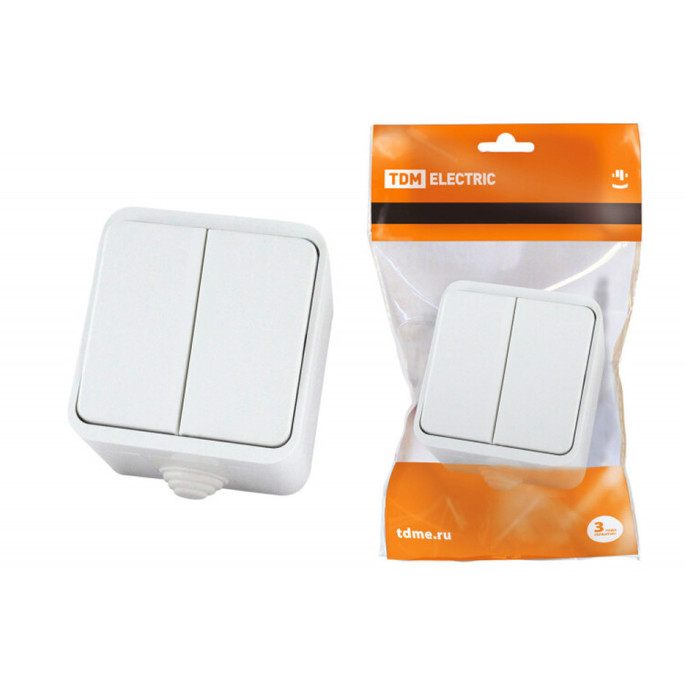 Выключатель 2-кл. OУ IP44 10А белый "Орель" SQ1802-0002, Выключатель и переключатель открытого монтажа