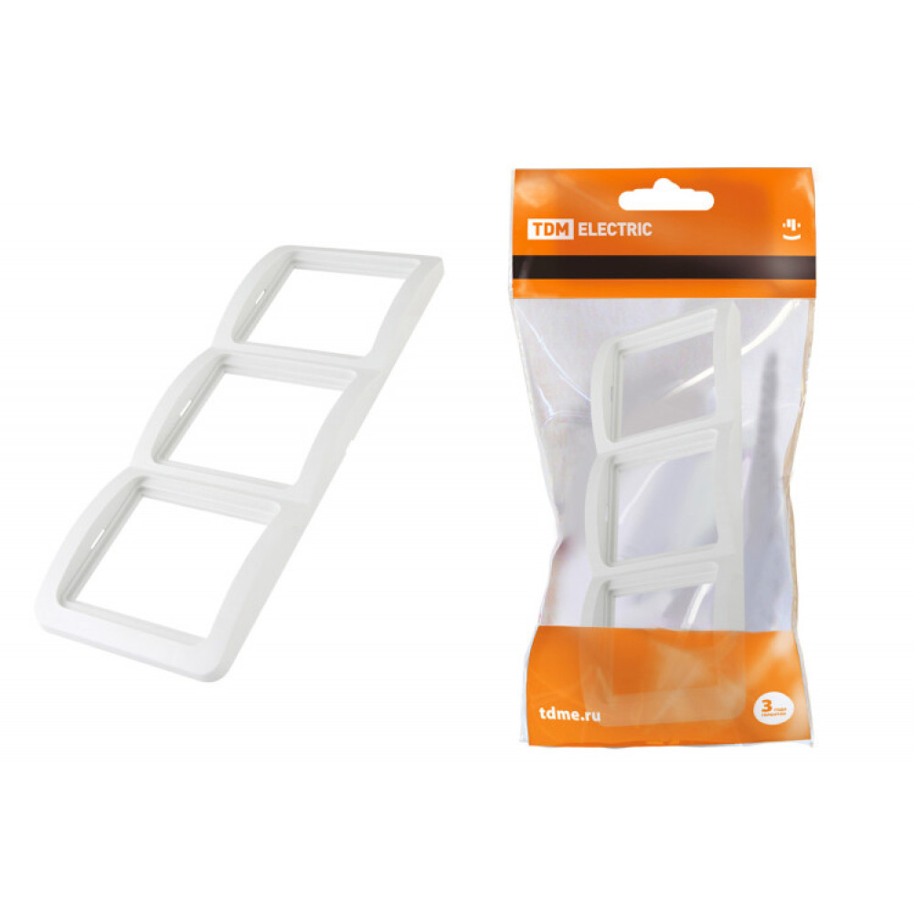 Рамка 3-ая вертикальная белая "Валдай" SQ1804-0020, Аксессуар для скрытого монтажа
