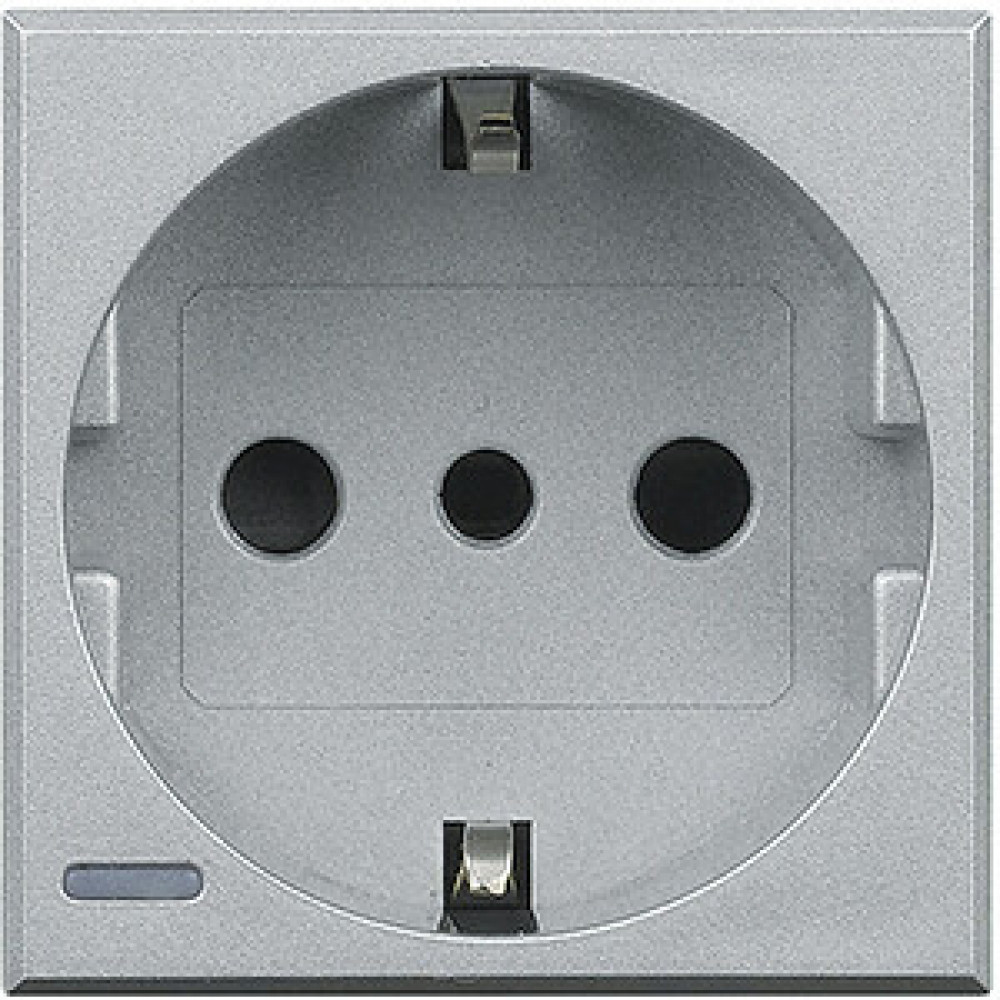 Axolute Розетка 2К+З, 10/16 А с центральным и боковыми заземляющими контактами Schuko, с защитными шторками, цвет алюминий, немецкий стандарт HC4140, Разъем силовой и модуль комбинируемый