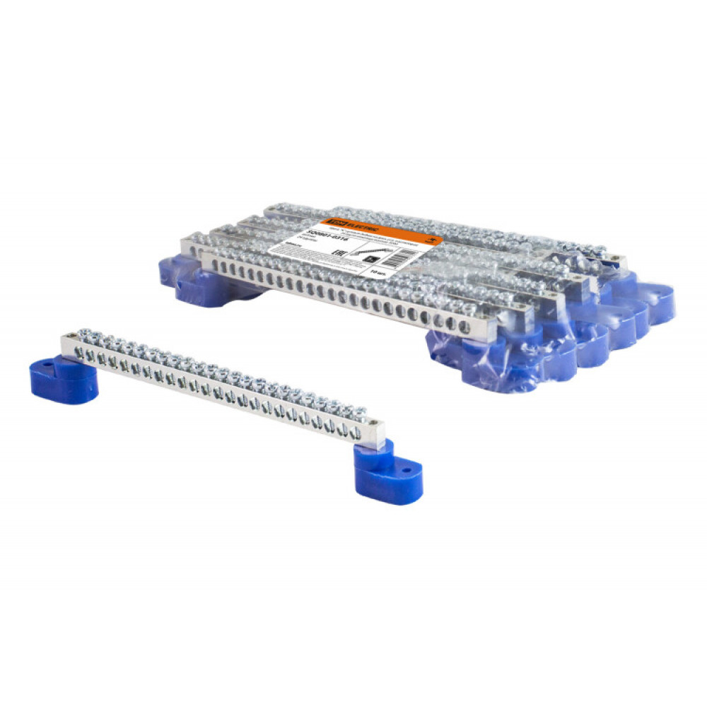 Шина "N" нулевая 6х9мм на двух угл. изоляторах 24 групп никелированная SQ0801-0316, Блок клеммный и нулевая шина
