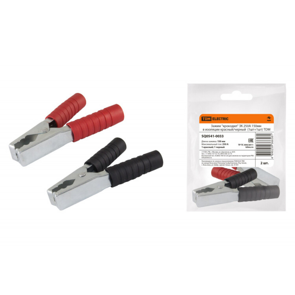 Зажим "крокодил" ЗК 250А 150мм в изоляции красный/черный (1шт+1шт) SQ0541-0033, Зажим "крокодил"