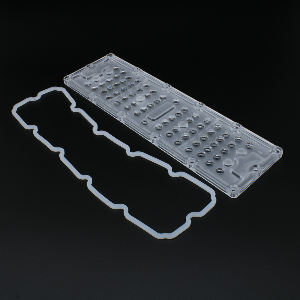 Групповая прямоугольная линза на 64 светодиода 3030/2835, эфф=90%, диаграмма 60°, 236x70мм H:7,1мм, PC-1250Z