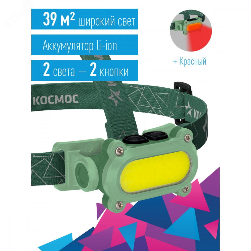 Фонарь аккумуляторный налобный 7Вт COB LED+красн. Li-ion 18650 1200мА.ч корпус ABS-пластик USB-шнур type C регулируемый эласт. ремешок KOC503Lit