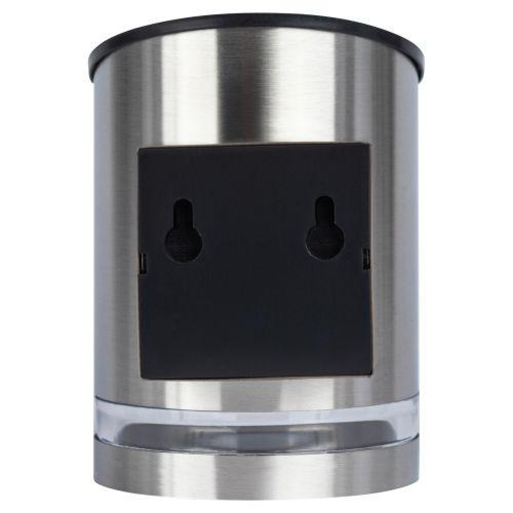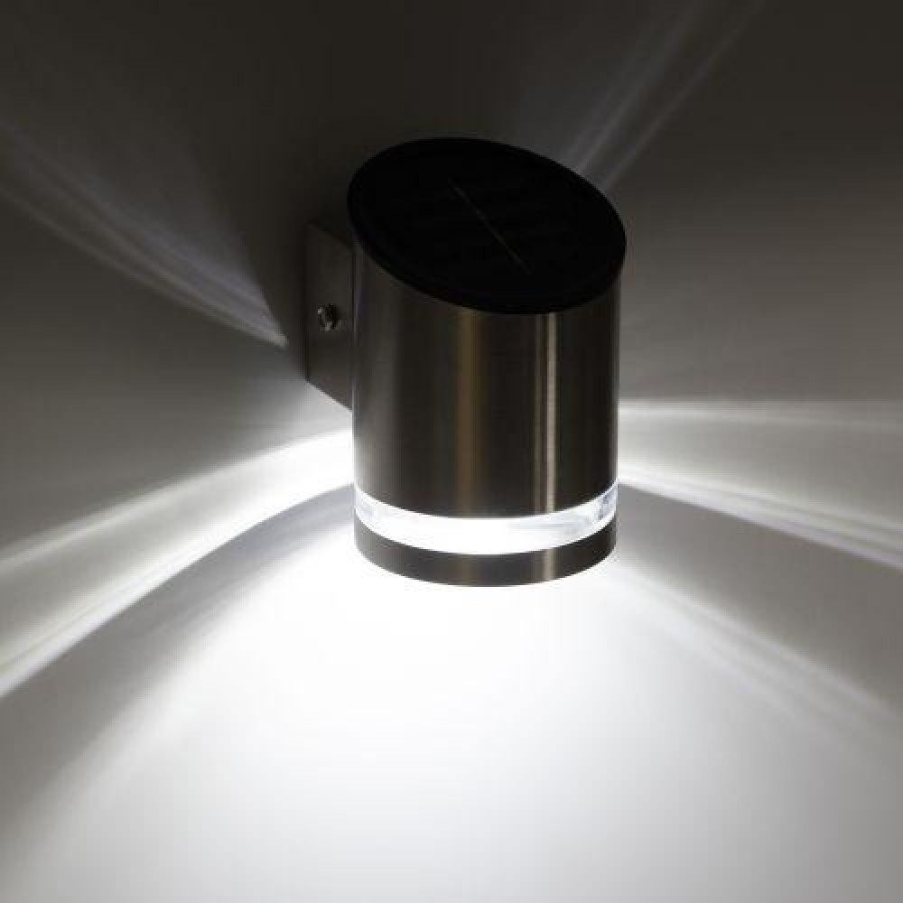 Новинка! Цилиндрический фасадный светильник ЭРА ERAFS012-03 «Статус» (арт. Б0057594) из хромированного металла с прозрачным ободком, эффектно пропускающим свет. Основной световой поток, формируемый 3 современными яркими светодиодами, направлен вниз. Нейтральный белый цвет свечения. Беспроводная фасадная подсветка на солнечной батарее быстро и легко монтируется, крепёж в комплекте. Солнечная панель расположена в верхней части корпуса и накапливает энергию в течение всего светового дня. Дополнительная подсветка вашего фасада автоматически включится с наступлением сумерек и проработает 8 часов до следующей подзарядки. Размеры светильника: 12х9,5х13 см. Отличным решением станет разместить на фасаде здания, на балконе, на гараже сразу несколько таких фасадных светильников.