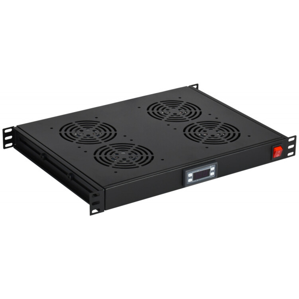 Модуль вентил. 1U с цифр. термостатом 4 вент. черный FM05-1U4TS-R, Элемент шкафа электронный