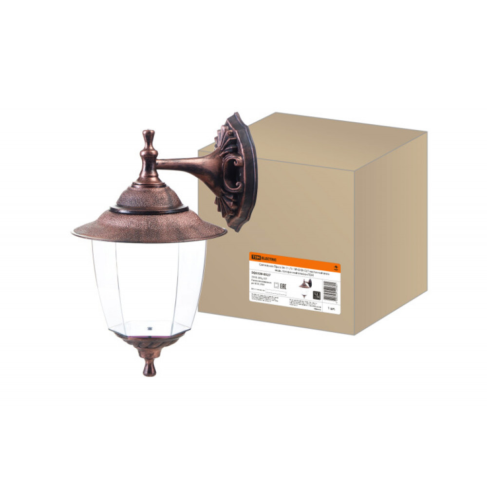 Описание Светильник Прага Эл-11-71-1М 60 Вт Е27 настенный вниз медь, прозрачный плафон SQ0330-0527