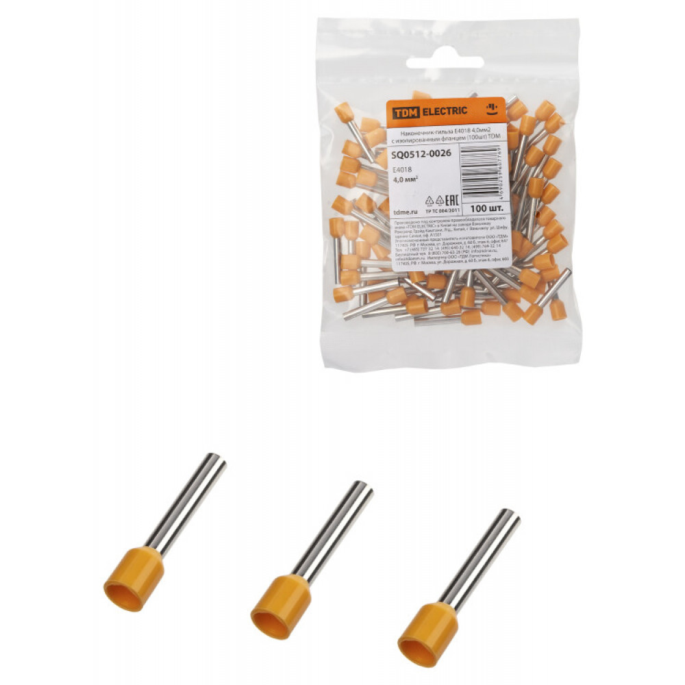 Описание Наконечник-гильза Е4018 4,0мм2 с изолированным фланцем (100шт) SQ0512-0026