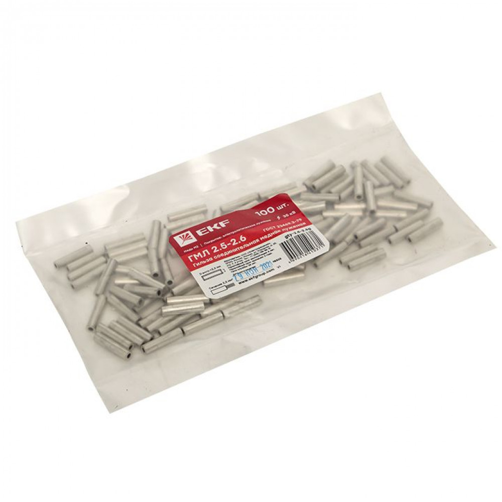 Описание Гильза соединительная медная луженая ГМЛ 2.5-2.6 ГОСТ PROxima gty-2.5-2.6g