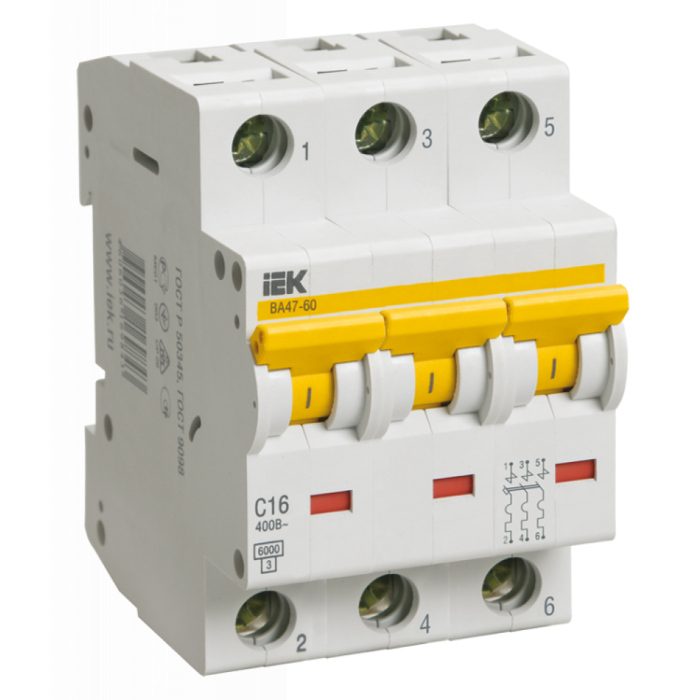 Автоматический выключатель ВА 47-60 3Р 16А 6 кА х-ка B MVA41-3-016-B, Выключатель автоматический модульный