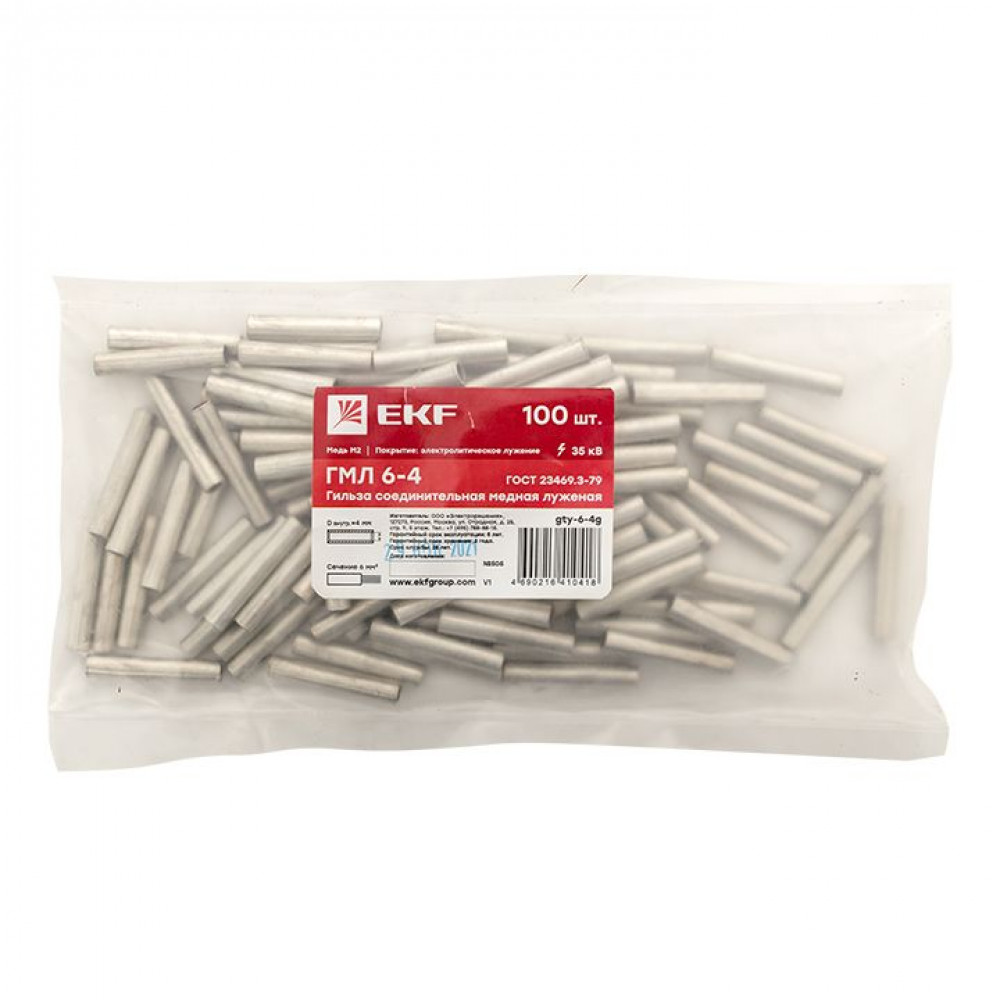 Описание Гильза соединительная медная луженая ГМЛ 6-4 ГОСТ PROxima gty-6-4g