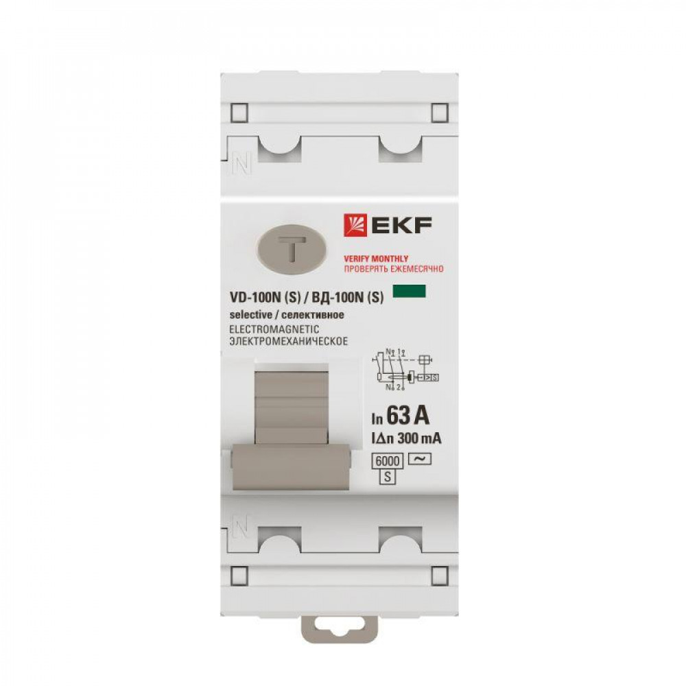 Описание Выключатель дифференциального тока 2п 63А 300мА тип AC 6кА ВД-100N (S) электромех. PROxima E1026MS63300
