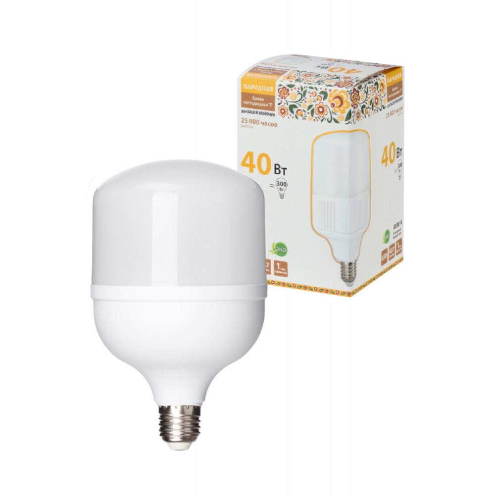 Лампа светодиодная T-40 Вт-230 В-4000 К–E27 (114x183 мм) Народная SQ0340-1644, Лампа светодиодная