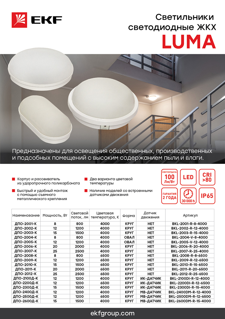 Описание Светильник светодиодный ЖКХ ДПО-1100 12Вт 4000К IP65 круг с оптико-акустическим датчиком движения BKL-1100DA-R-12-4000