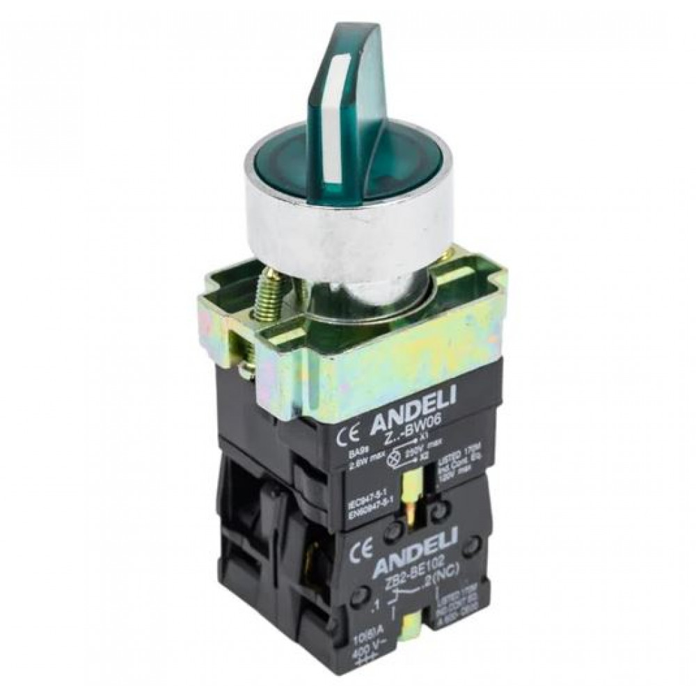 ПЕРЕКЛЮЧАТЕЛЬ XB2-BK2365 2 ПОЛОЖЕНИЯ ЗЕЛЕНЫЙ 1З+1Р (ANDELI)