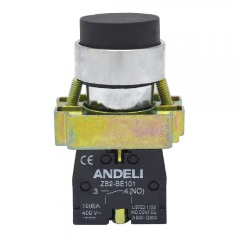 КНОПКА XB2-BL21 БЕЗ ПОДСВЕТКИ ЧЕРНЫЙ 1НО (ANDELI)