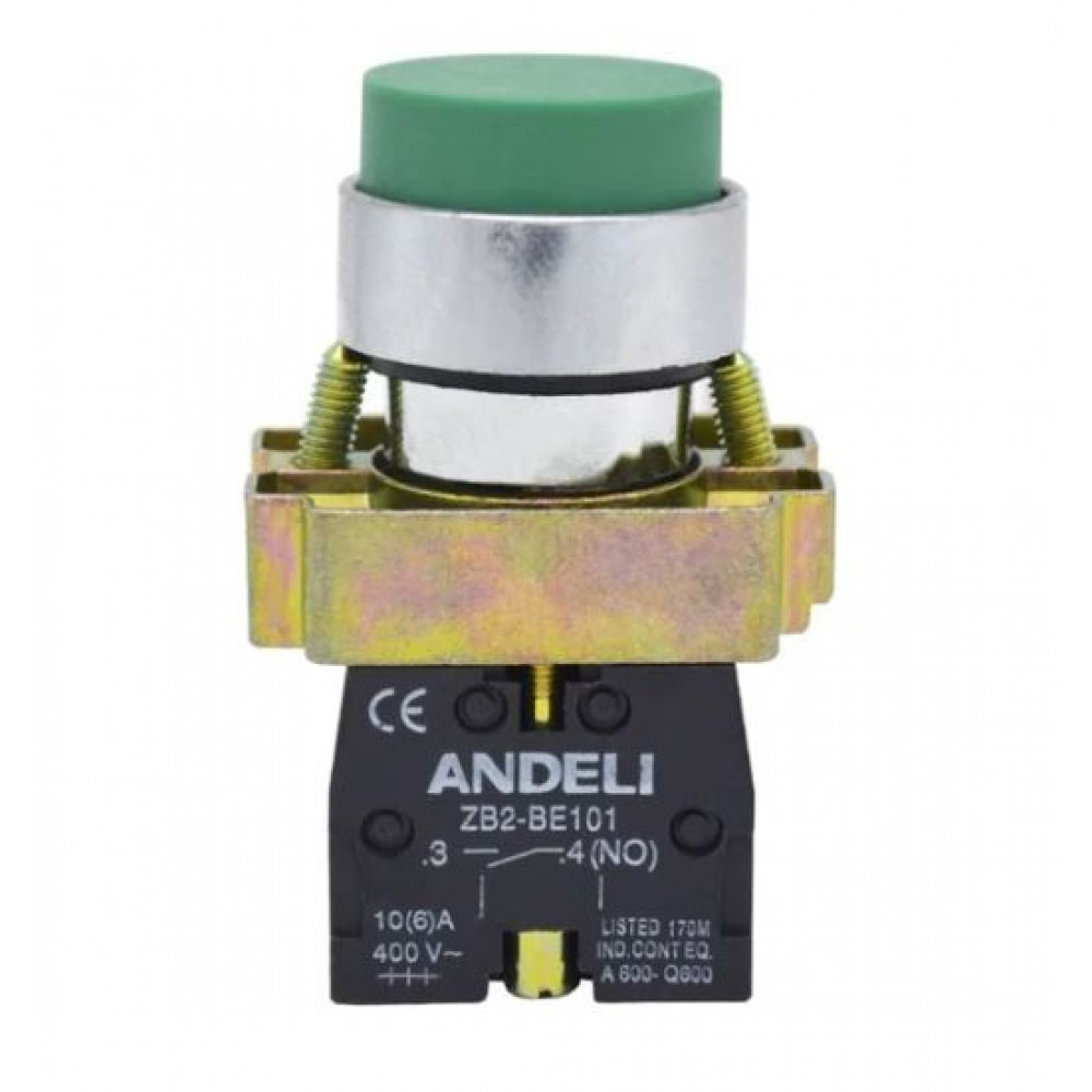 КНОПКА XB2-BL31 БЕЗ ПОДСВЕТКИ ЗЕЛЕНЫЙ 1НО (ANDELI)