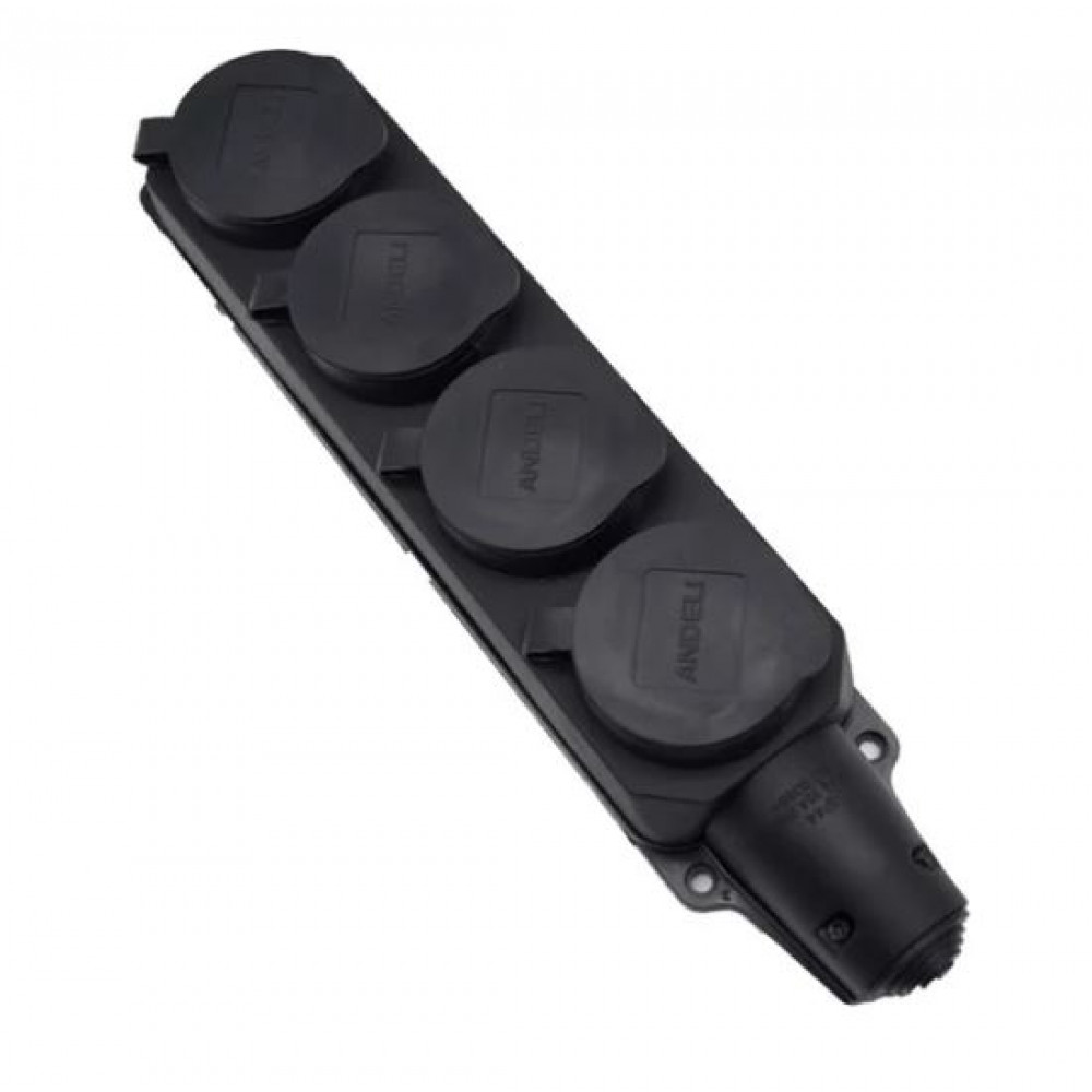 РОЗЕТКА ЧЕТЫРЕХМЕСТНАЯ С ЗАГЛУШКАМИ КАУЧУК AM-K06 2Р+РЕ 16А