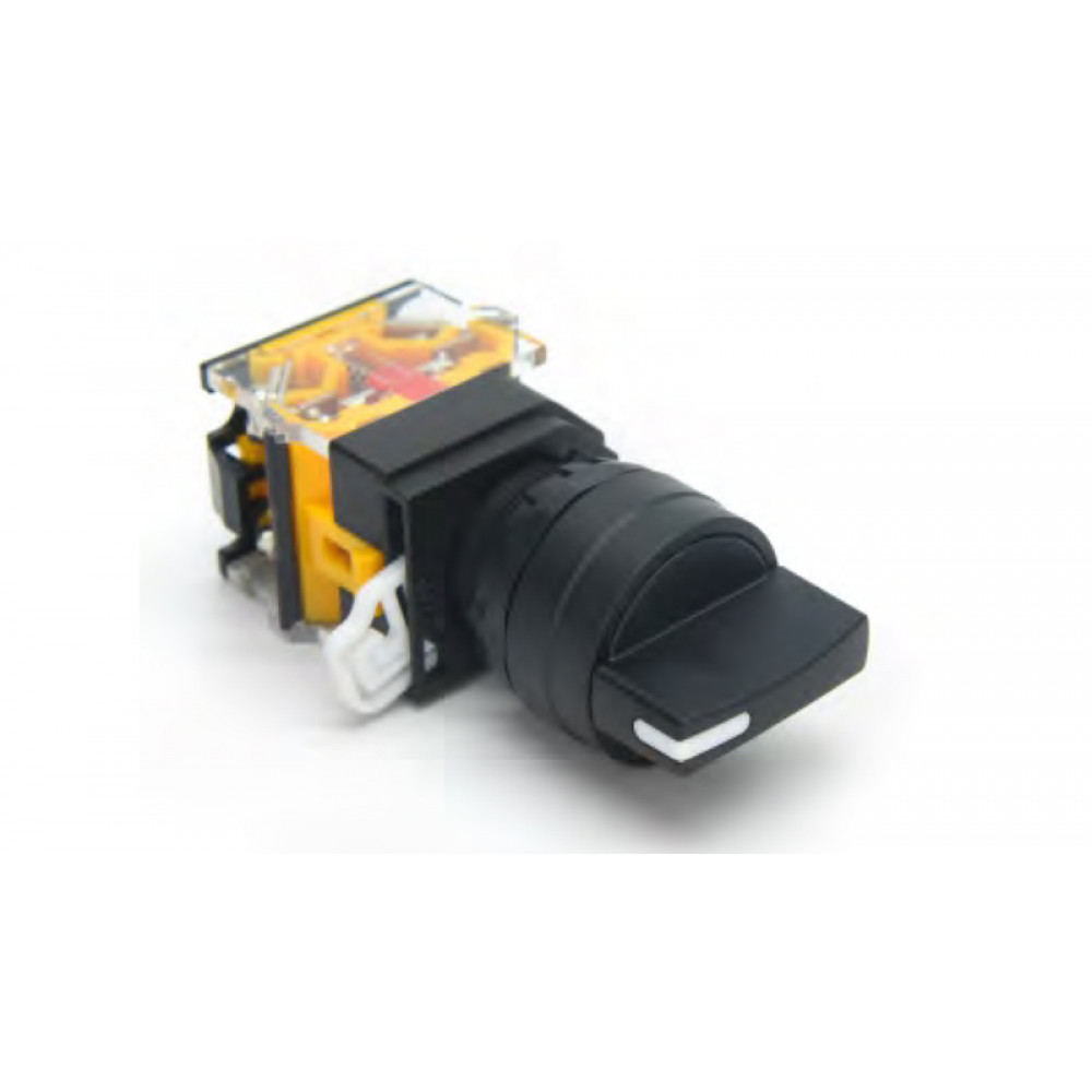 Переключатель 2 положения, в сборе, с фиксацией, 24 - 380VAC / DC, 0,6 - 10A, без подсветки, 1NO1NC, цвет: черный, диаметр отверстия: 22 мм, пластиковая обойма кнопки