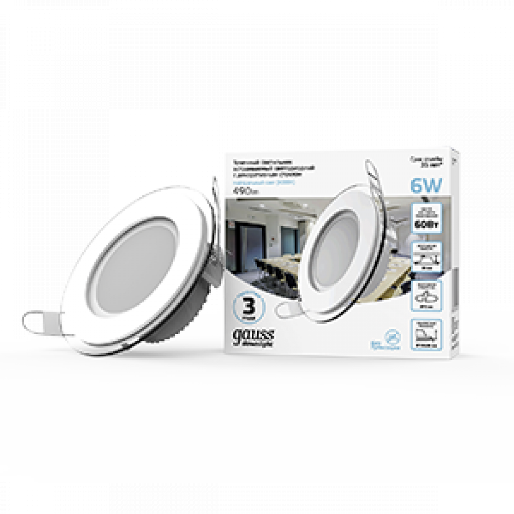 Описание Светодиодный встраиваемый светильник круглый с декоративным стеклом, 6W 4000K 1 947111206