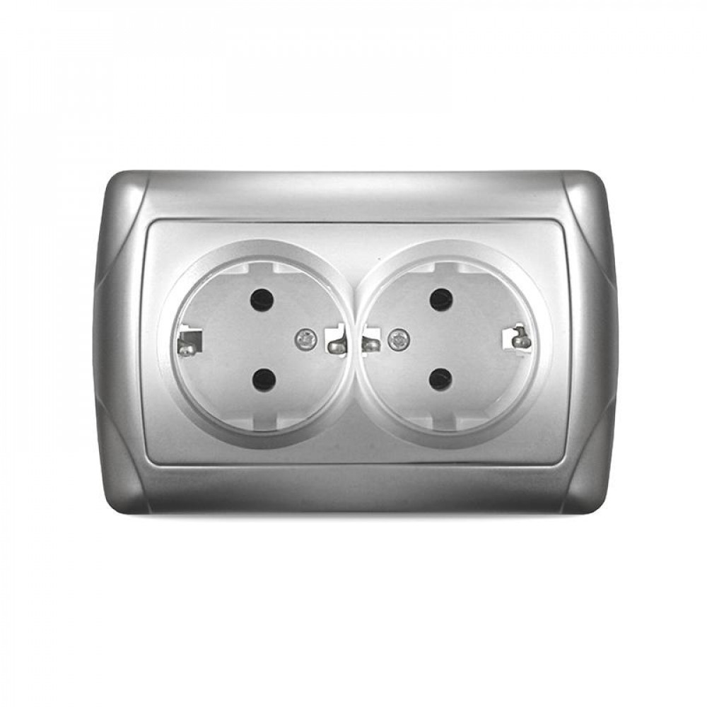 Розетка 2-м СП Маргарита 16А IP20 с заземл. серебр. М0128-S, Розетка скрытого монтажа