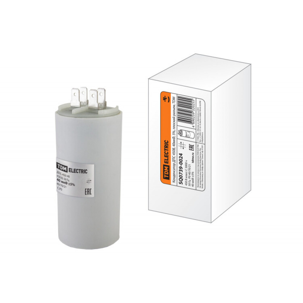 Конденсатор ДПС 450В, 40мкФ, 5%, плоский разъем, SQ0739-0024, Электродвигатель общепромышленный