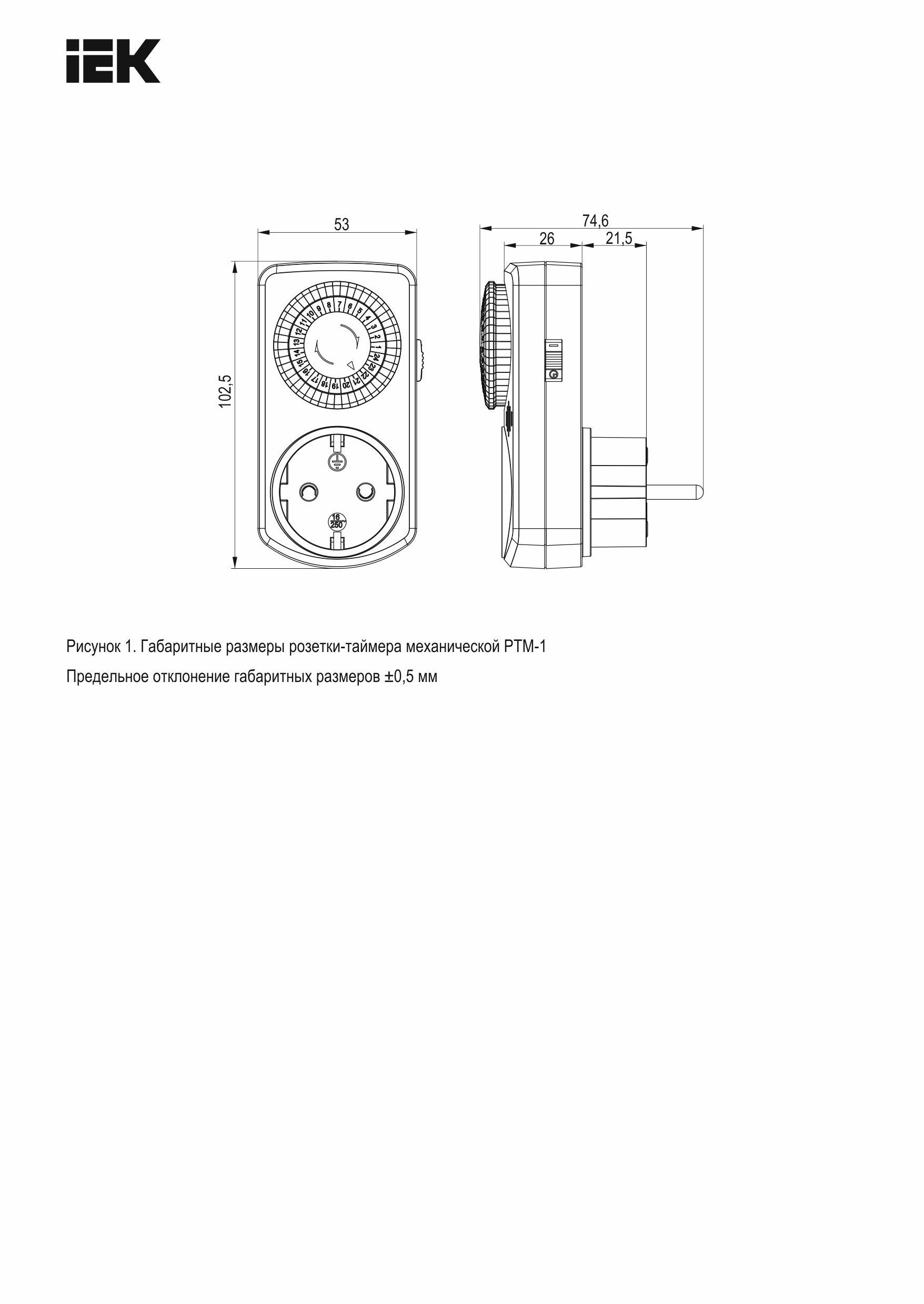 Описание РТМ-1 Розетка-таймер механ. 30мин 24ч 48on/off 16А IP20 ERT-20-1-16-S-30-0-20-K01