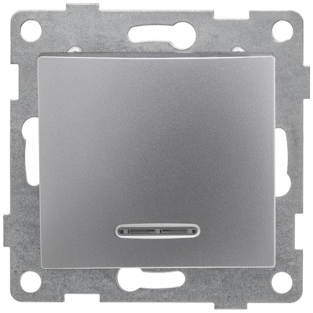 Выключатель 1-кл. СП Bravo 10А 250В с индикацией механизм серебр. С10В18-004, Выключатель и переключатель скрытого монтажа