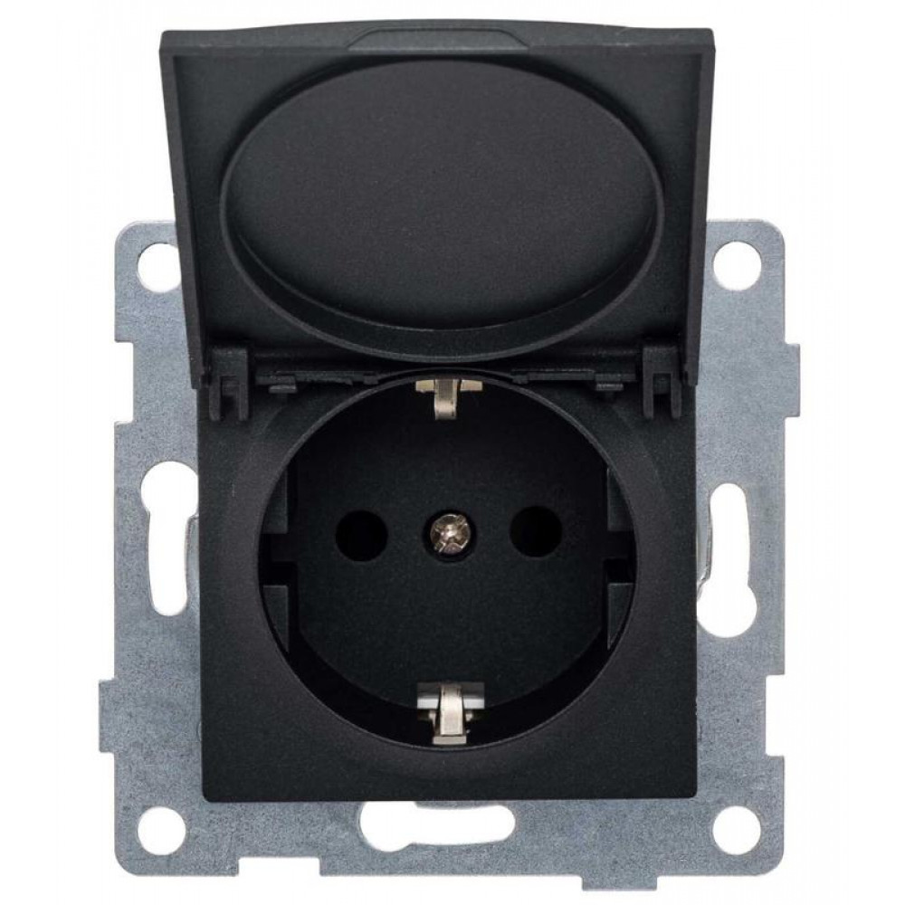 Розетка 1-м СП Ugra 16А 250В с заземл. защ. шторки с крышкой механизм графит С11Р91-010, Розетка скрытого монтажа