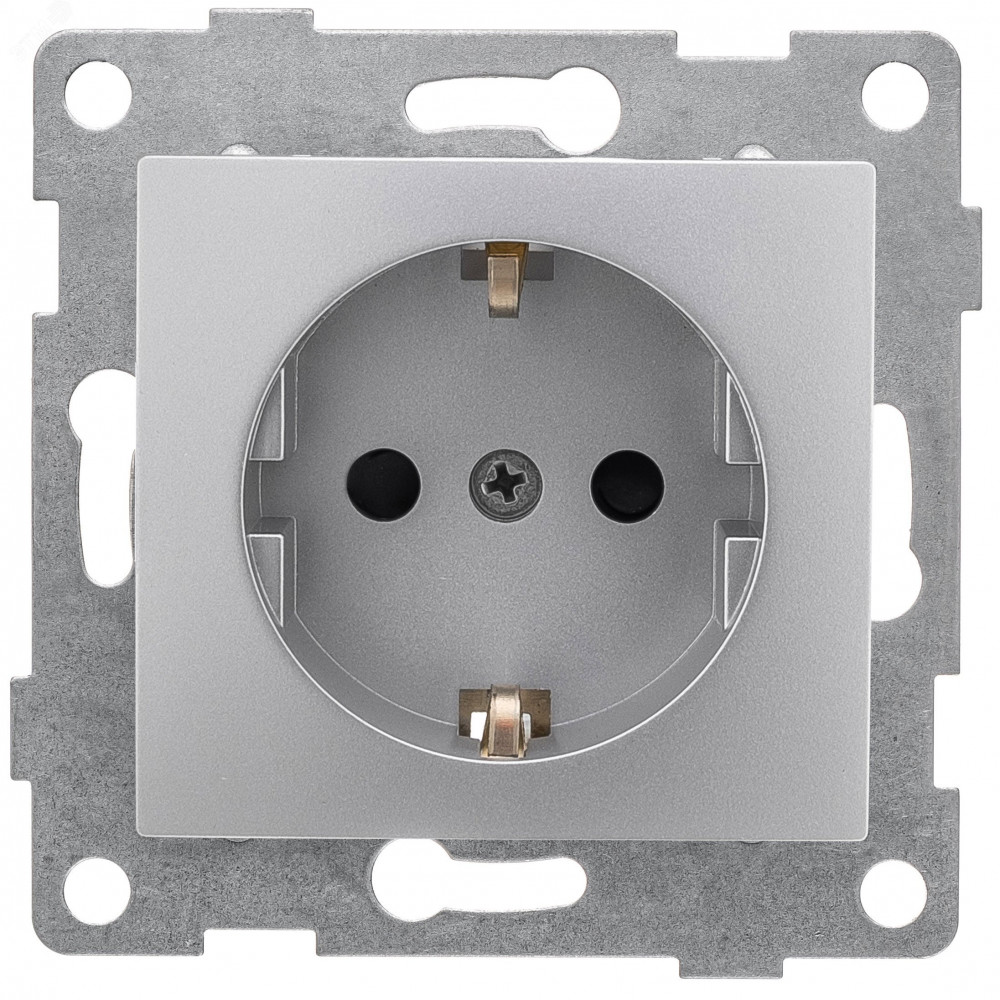 Розетка 1-м СП Bravo 16А 250В с заземл. защ. шторки механизм серебр. С10Р4-004, Розетка скрытого монтажа