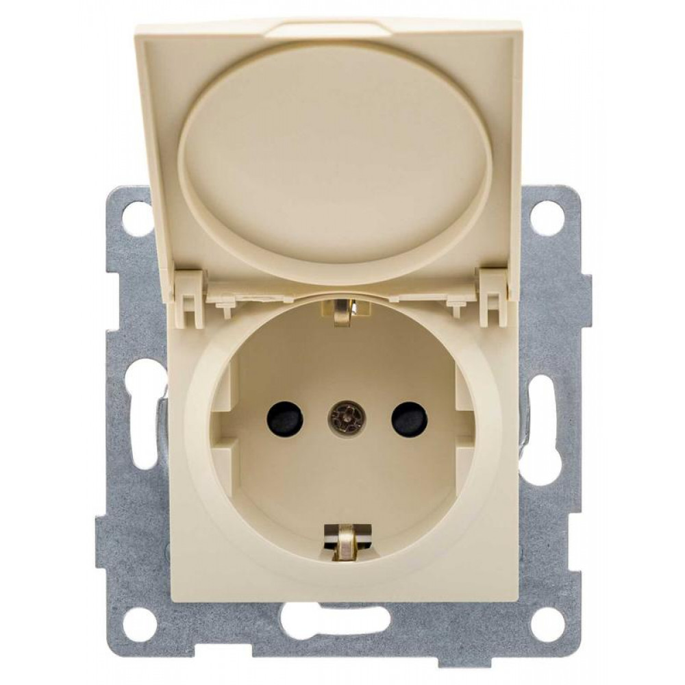 Розетка 1-м СП Ugra 16А 250В с заземл. защ. шторки с крышкой механизм беж. С11Р91-003, Розетка скрытого монтажа