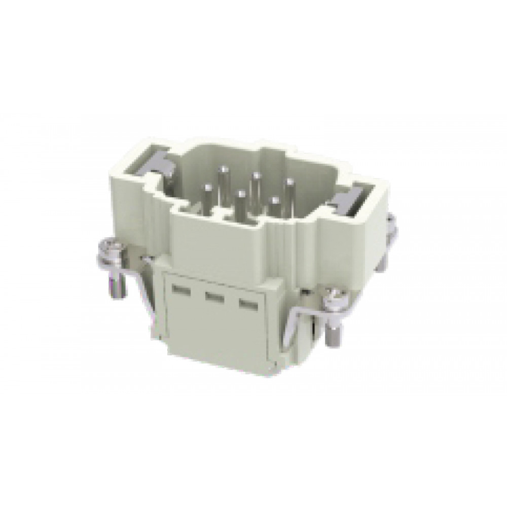 Вилочная контактная вставка DE-006-MP, Вилочная контактная вставка, Push-in фиксация, 6 полюсов + PE, типоразмер 6B, 500V, 16A, сечение обслуживаемых проводников 0,5-2,5 мм кв, тип покрытия контактов: серебро