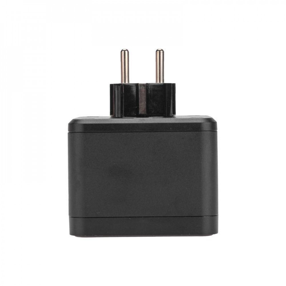Многофункциональный электрический двойник с быстрой зарядкой позволяет подключить к бытовой розетке сразу два прибора со стандартной Евро-вилкой и одновременно три портативных устройства с USB-разъемами питания. Идеально подходит для бытовой техники: кофемашины, тостера, электрической зубной щетки, фена, а также и для мобильного телефона, наушников и т.д.