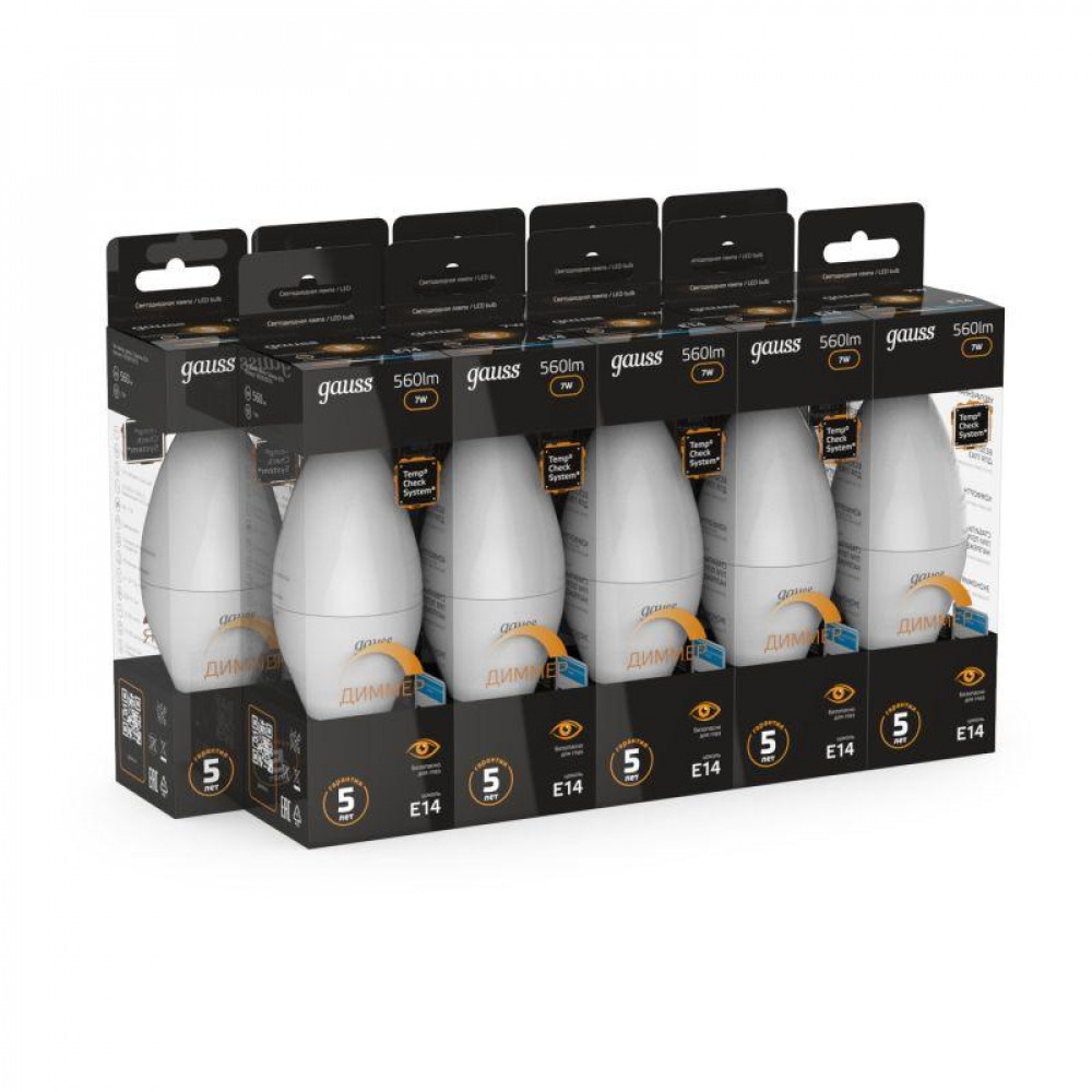 Описание Лампа LED Candle-dim E14 7W 3000К диммируемая 1/10/100 103101107-D