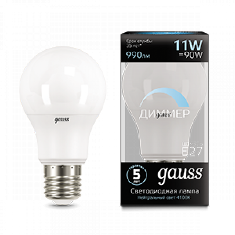 Описание Лампа LED A60-dim E27 11W 4100К диммируемая 1/10/50 102502211-D