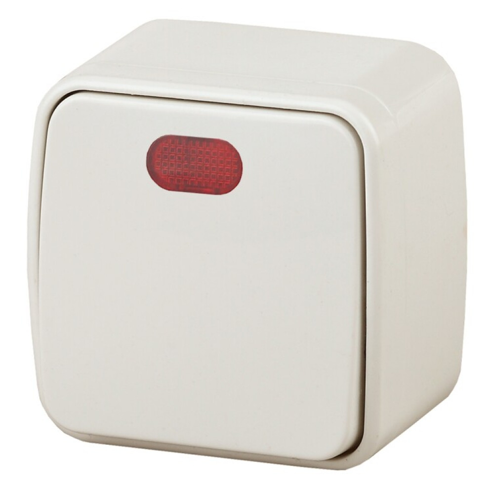 3-102-02 Выключатель с подсветкой, 10А-250В, IP20, ОУ, Polo, сл.кость (18/360/4320) Б0036117, Выключатель и переключатель открытого монтажа