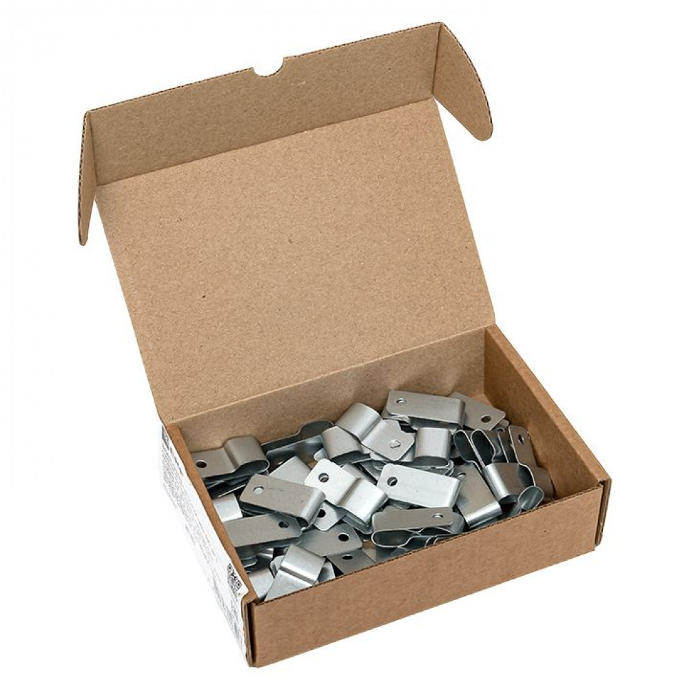 Металлический крепеж ТСР, КТСР представляет собой унифицированный крепеж, изготовленный из оцинкованной стали для крепления как саморегулирующихся (ТСР), так и резистивных нагревательных кабелей постоянной мощности (КТСР). Позволяют осуществить надежное и безопасное крепление нагревательных кабелей в обогреваемых зонах и предотвращает скручивание или самопересечение двух ниток кабеля между собой при монтаже. Выпускается для крепления как одной нитки кабеля к обогреваемой поверхности, так и двух ниток нагревательного кабеля между собой. Для монтажа зажимов в обогреваемых желобах применяется полоса стальная оцинкованная 0,5х15 мм, для монтажа зажимов с нагревательным кабелем в водосточных трубах – трос стальной в ПВХ оболочке.