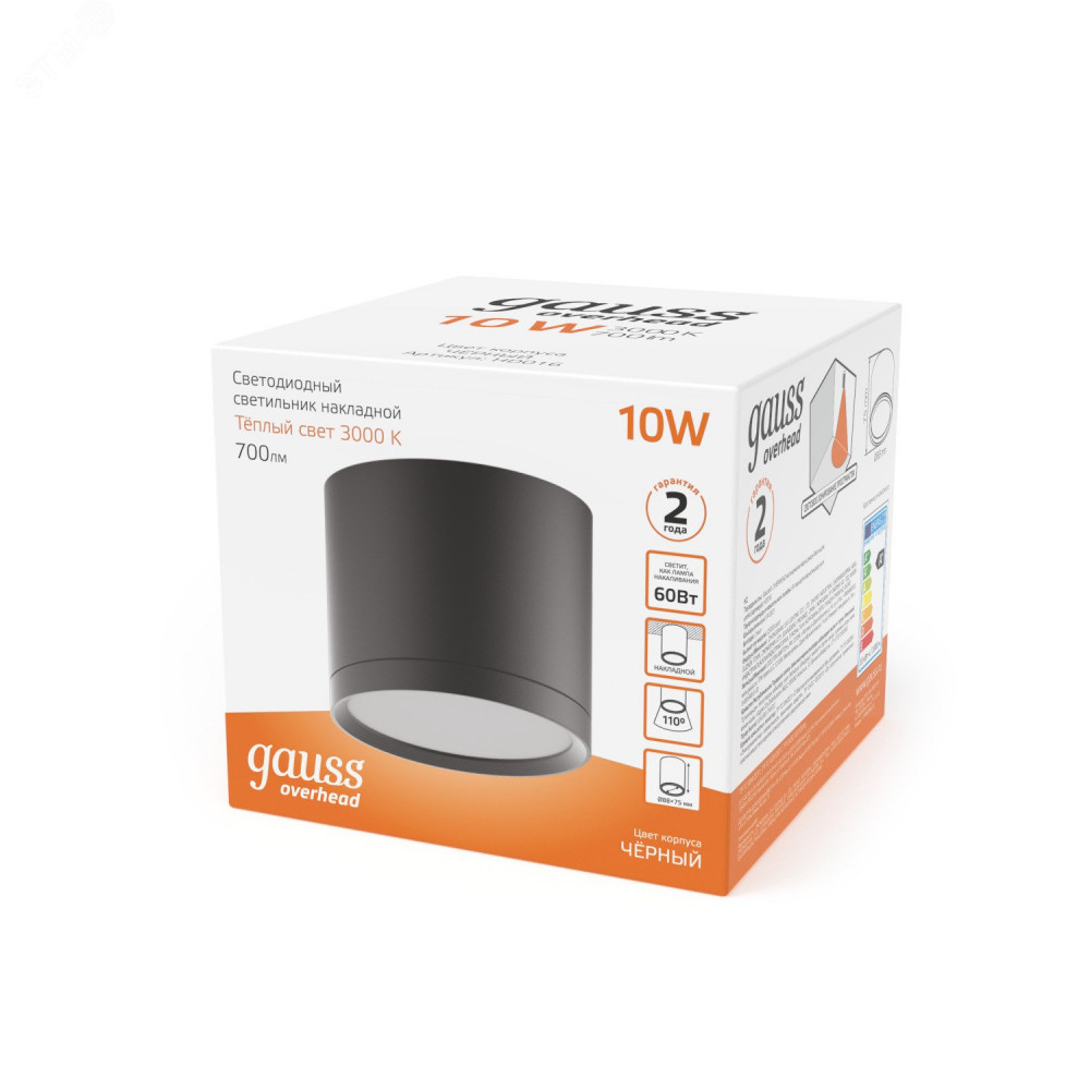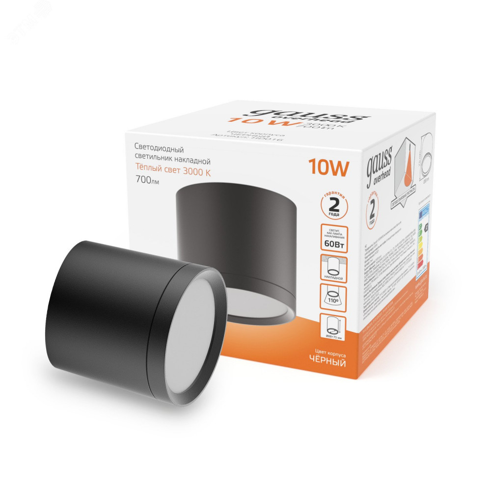 Описание LED светильник накладной с рассеивателем 10W (черный) 3000K 88х75мм 1/30 HD016
