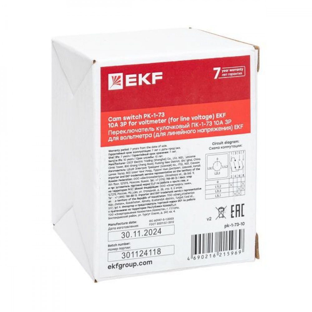Переключатель кулачковый ПК-1-73 10А 3P для вольтметра линейное напряжение PROxima pk-1-73-10, Переключатель кулачковый