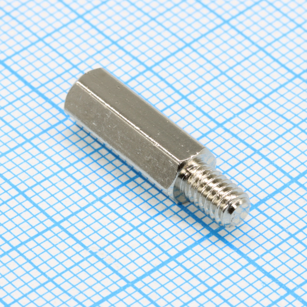 Стойка латунная никелированная для печатной платы, шестигранная, М4, 15мм, отверстие-винт
