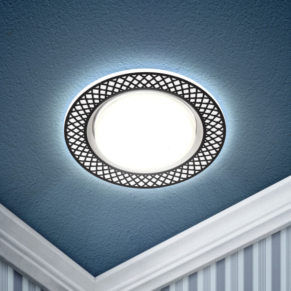 Описание KL79 WH/BK Светильник под лампу Gx53 круглый,220V,13W,белый/черный (30/720) Б0037361